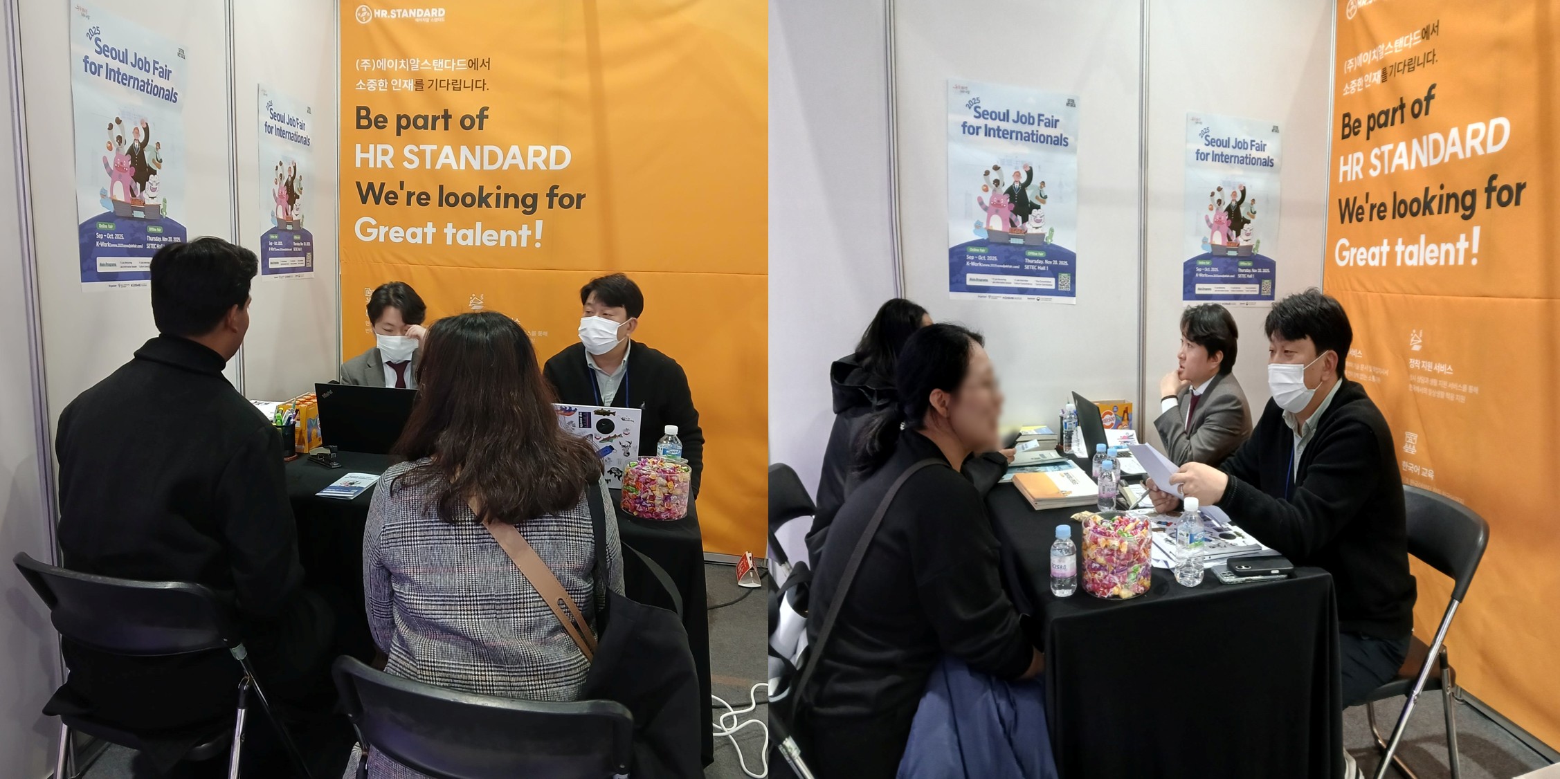 저희 HR STANDARD 부스에도 다양한 국가에서 온 외국인 구직자들이 들러